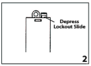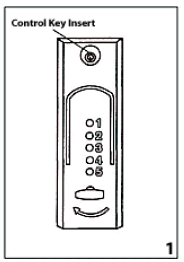Important: Perform this procedure with the DOOR OPEN. Read the instructions through once before attempting to change the combination. The factory pre-set combination is 2 and 4 pressed simultaneously (and released), then press 3 (and release). Tool Required: Control Key1. Insert the control Key into the lock and turn it 90° to the right (clockwise) to the horizontal position to unlock the front lock assembly from the mounting bracket (see figure 1). 2. Remove the front lock assembly from the mounting bracket by pulling it away from the door. 3. While holding the lock in your hand, turn the knob to the left (counter- clockwise) to the stop position and release. 4. Enter the existing combination. Make sure you depress each button fully and release. 5. Use your finger to depress the lockout slide (see figure 2). A slight click should be felt. 6. Rotate the turn knob to the left (counterclockwise) to the stop position to clear the old combination, then release. 7. Select a new combination, write it down. Some or all of the buttons may be used for your new combination–pressed individually or simultaneously. Each button may be used only once. We do not recommend the use of a onebutton combination. 8. With the door open, enter your new combination. Depress each button fully and release it. You must feel a click each time you press a button to know that the button was fully depressed. 9. Turn the knob to the right (clockwise) to the stop position to activate the new combination and release. 10. Remount the front lock assembly by aligning the lock-in studs of the mounting bracket with the mating holes of the front lock assembly lock-in plate. 11. Turn the control key to the left (counterclockwise) to the vertical position. The front lock assembly is now locked in place. 12. Enter the new combination and rotate the turn knob to the right (clockwise) and hold. Make sure that the panic device latch is fully retract |
