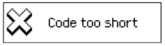 | Code too short - This message appears when the code that you have entered has less than 8 digits. Re-enter a valid code. | |