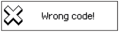 | Wrong code - This message appears when you have entered an invalid code. Re-enter a valid code. | |