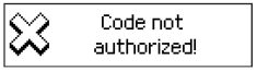 | Code not authorized - This message appears when you have entered a valid code but you have no rights for the respective task. Re-enter a valid code for the respective task. |