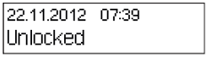 The Time Lock Delay is stored and the delay time immediately starts to run. The unit returns automatically to the menu option “Delay Time Lock”. | ||