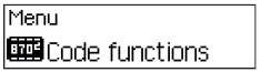 | 2. Select and confirm the menu option “Code functions”. | ||