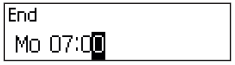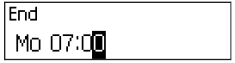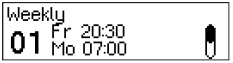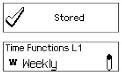 The Weekly Locking Period is stored. The input unit returns to the menu option “Time Functions L1 Weekly”. You can now configure additional Weekly Locking Periods (repeat steps 6 to 9) or return to the standard mode display. |