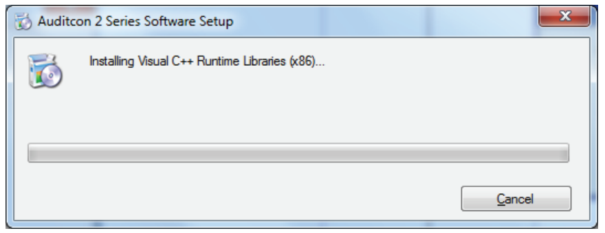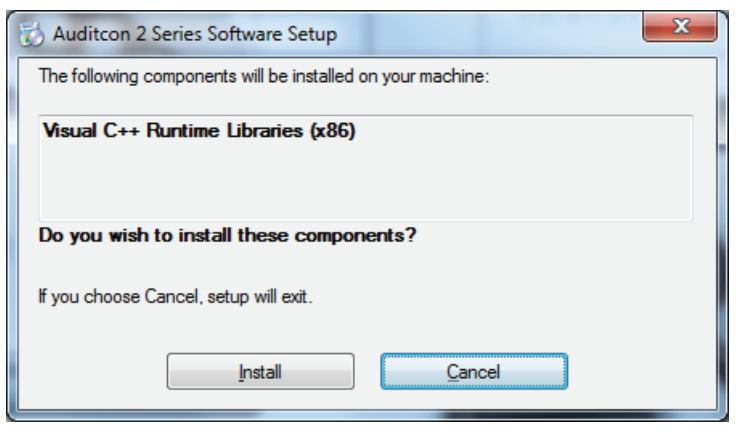 3. If the Visual C++ Runtime Libraries (x86) are not already installed on your PC, the following Software Setup window is displayed, prompting to install these components.