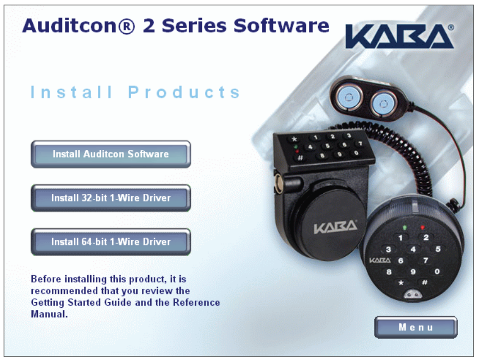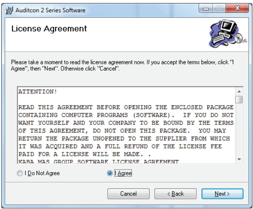 Note: It is strongly recommended that you close all other applications before installing the Auditcon 2 Series Software. It is also recommended that you review the Auditcon 2 Series Software Reference Manual before installing the software.