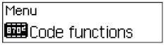 | 2. Select and confirm the menu option “Code functions”. | ||