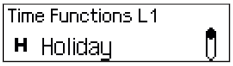 | 15. Select and confi rm menu option “Time Functions L1 Holiday”. | ||