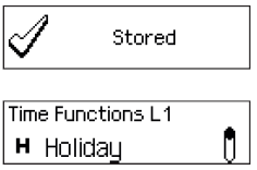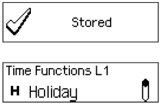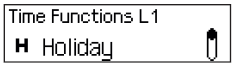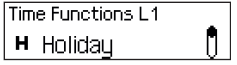 | 10. Select and confirm menu option “Time Functions L1 Holiday”. | ||