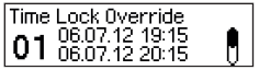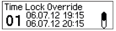 | If Time Lock Overrides have already been confi gured, the display with the data “Time Lock Interrupt. 01”. Otherwise, the display of the “Time Lock Interrupt. 01 appears without data. | ||