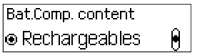 The setting is stored. The input unit returns to the menu option “Input Unit bat.comp content”. You can now configure other settings or return to the standard mode display. | ||