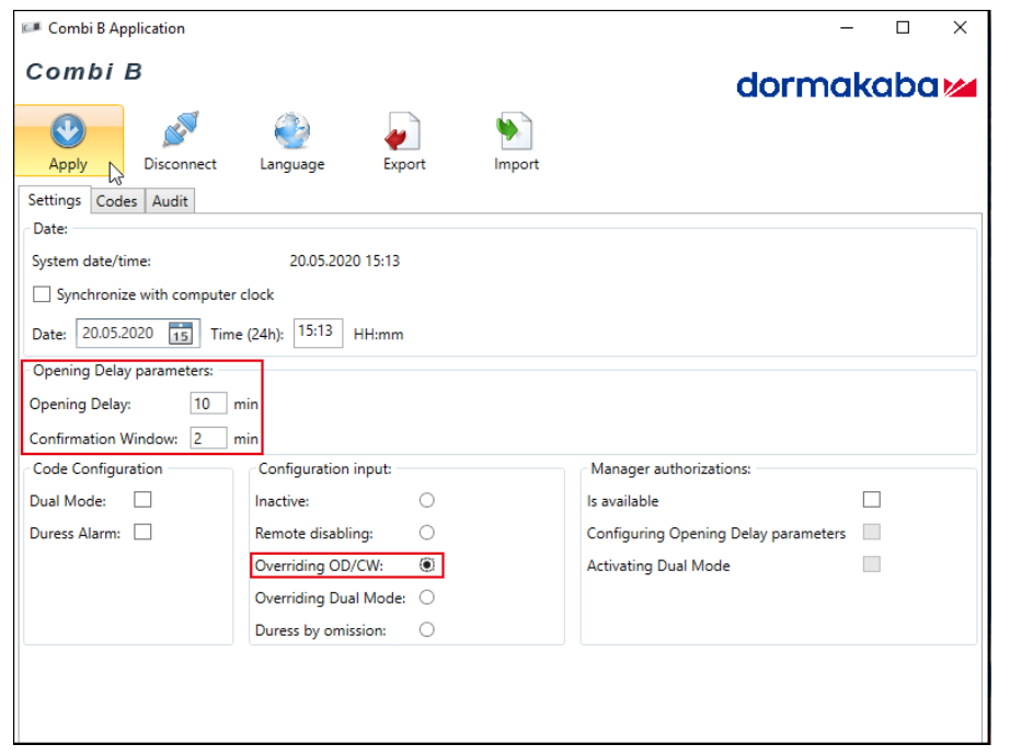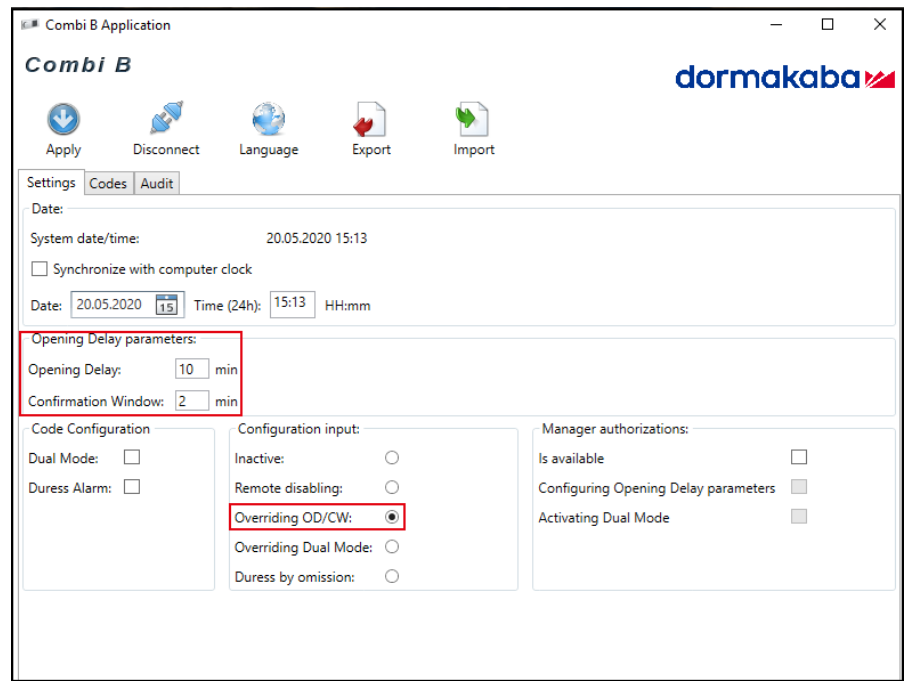 When the function 'Overriding Opening Delay and Confirmation Window' is activated and an input signal has been applied, any set Opening Delay and Confirmation Window will be overridden.