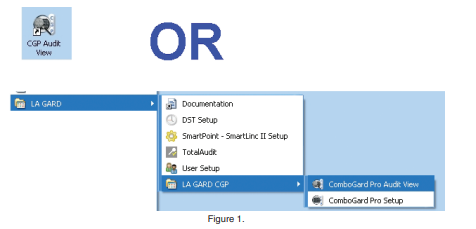 Start --> Programs --> LA GARD --> LA GARD CGP --> ComboGard Pro AuditView The AuditView Main Menu screen will be displayed (Figure 2). |