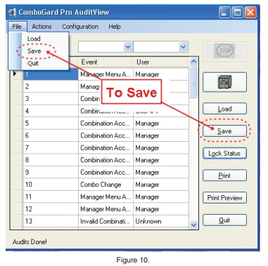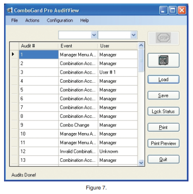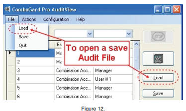 View a Saved Audit File: Once an audit file has been saved, it may be viewed by using the Load function of the ComboGard Pro AuditView software. 1. Click the Load button or select Load from the File menu on the Menu bar (Figure 12).