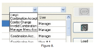 Select Data There are two “selection” boxes above the audit listing. The selection box on the left allows you to select audit data of a specific event type. The selection box on the right allows you to select audit data for a specific user. Click on the respective drop down arrows for the available selections (Figure 8). Once a selection is made, a revised audit list is displayed.