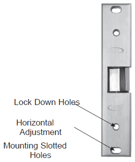 The RCI 0161 Electric Strike is never to be used as a door stop. Please install stops on the frame in appropriate locations. Ensure the exit device functions as intended for life safety concerns by verifying electric strike and exit device compatibility.