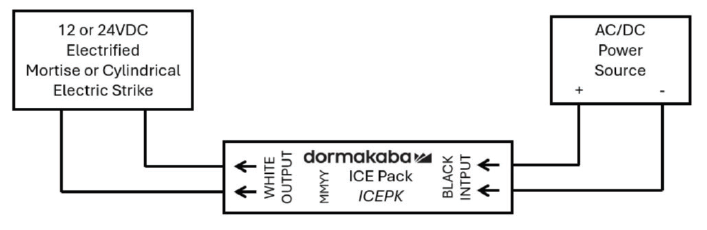 Step 3 - Connect the two white wires to the locking device. Connect the black leads on the ICEPK to the power supply. (Non Polarity Sensitive)