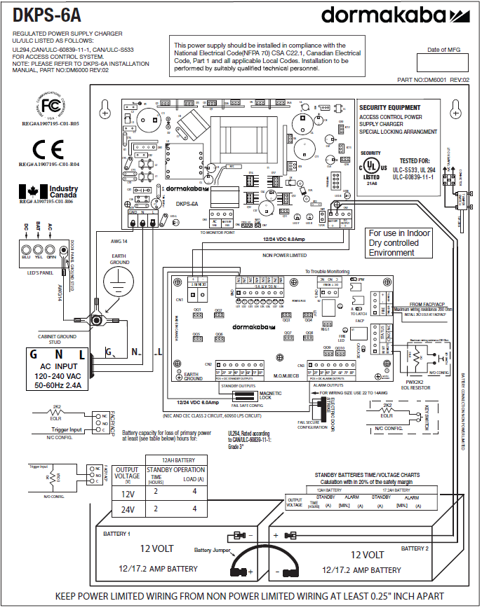 | DKSP-6A | Power Supply | I | I | IV | III (when used with 12 AH battery 'output is limited to maximum 4 Amps' |