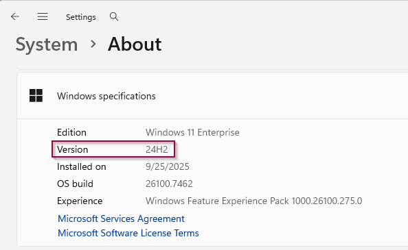 - If your version is 24H2 or 25H2, Enterprise will not load. If the version is 23H2 or lower, Enterprise will load.