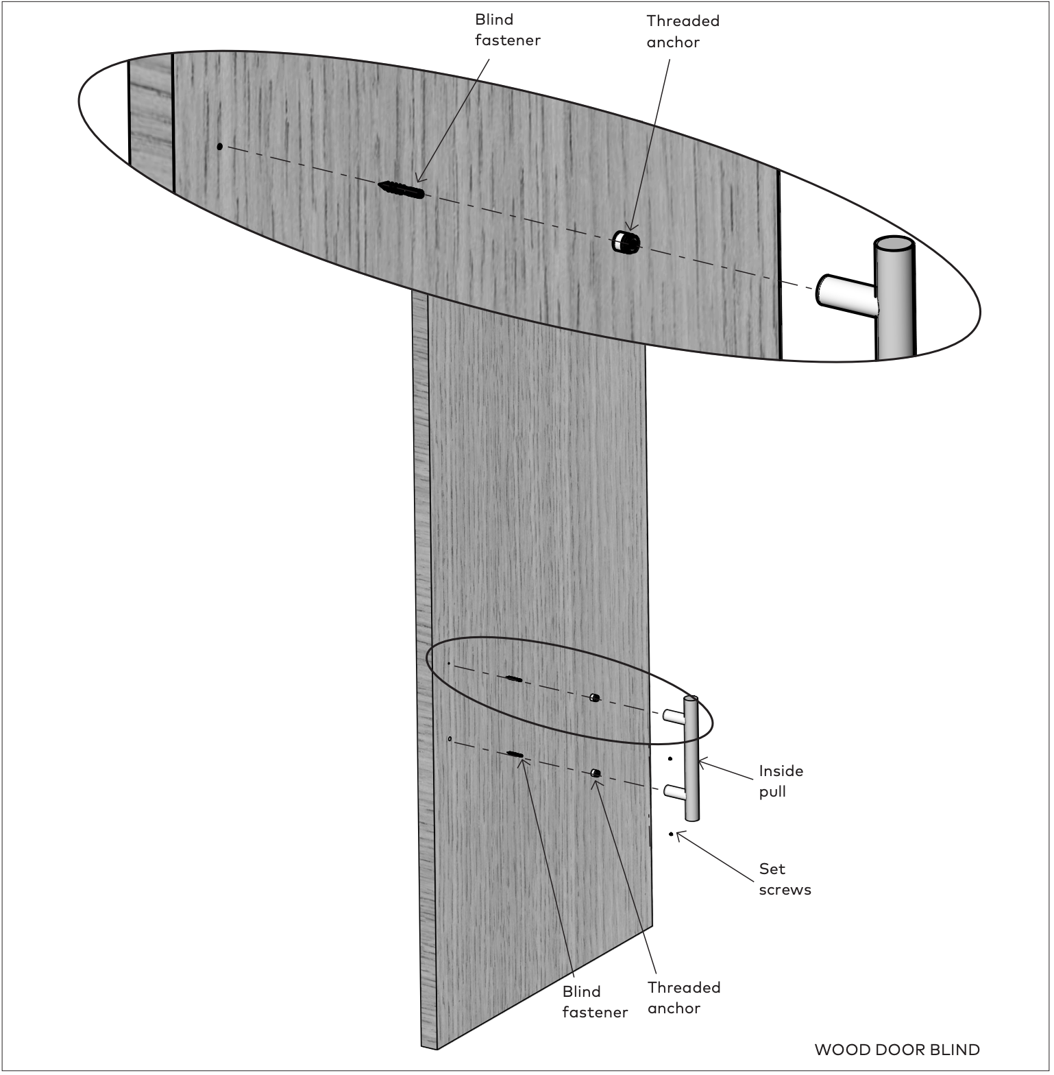 NOTE: The tapered side of the anchor should face the pull. - Twist the blind fastener through pilot hole in the wood door.